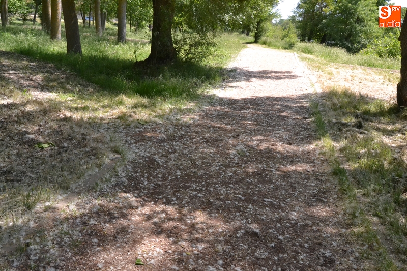 Buena parte de las zonas verdes de Ciudad Rodrigo, especialmente en el entorno del río Águeda, se están convirtiendo una primavera más en una zona 'prohibida' para numerosas personas que sufren alergia por culpa de las pelusas del chopo que las pueblan durante estos días.