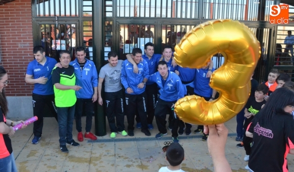 -Una oportuna molestia: Hay ocasiones en que de repente a la hora de hacer una foto se meten en escena personas o cosas. Fue el caso en la tarde del domingo a la hora de ir a hacer una foto de la plantilla de La Despensa al salir del Pabellón de Carbajosa. Sin embargo, esta vez la molestia fue totalmente oportuna: el objeto que se coló en el cuadro fue el '3' de tricampeones, quedando una foto que parece preparada cuando fue totalmente de casualidad.![[El 3º Día | 8 Mayo] | Imagen 8](/adjuntos/DSC_0516(3).jpg)