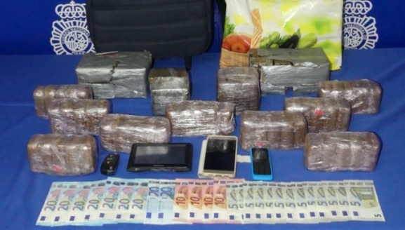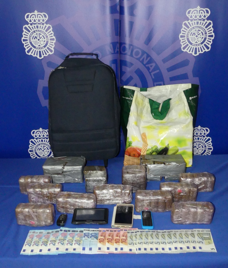 Un varón de 47 años, al que le constan 7 detenciones anteriores, ha sido arrestado en la calle Jamaica, ya que circulaba con una maleta, en el asiento posterior, que contenía trece paquetes de diferentes tamaños con placas y pastillas de hachís.