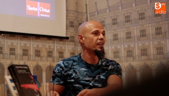 El escritor César Pérez Gellida ha presentado en la librería Santos Ochoa 'A grandes males', última entrega de la trilogía 'Refranes, canciones y rastros de sangre'.