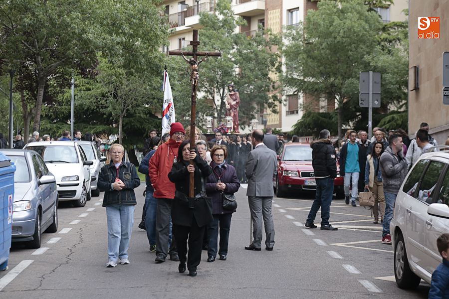 Con motivo de esta efeméride, se realizaba una salida por las calles del barrio de San Bernardo con las andas cedidas por la Archicofradía del Rosario por el siguiente recorrido: calles Peña de Francia, Villares, Candelario, Hogar, Alberca, avenida de Villamayor (iglesia de Santa Teresa), Candelario, Villares, Peña de Francia y regreso al templo de San Juan de Mata, donde tenía lugar una eucaristía.