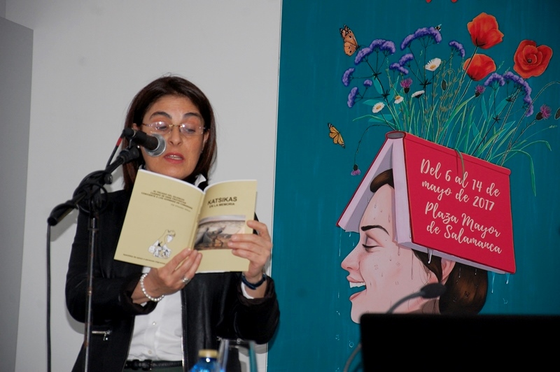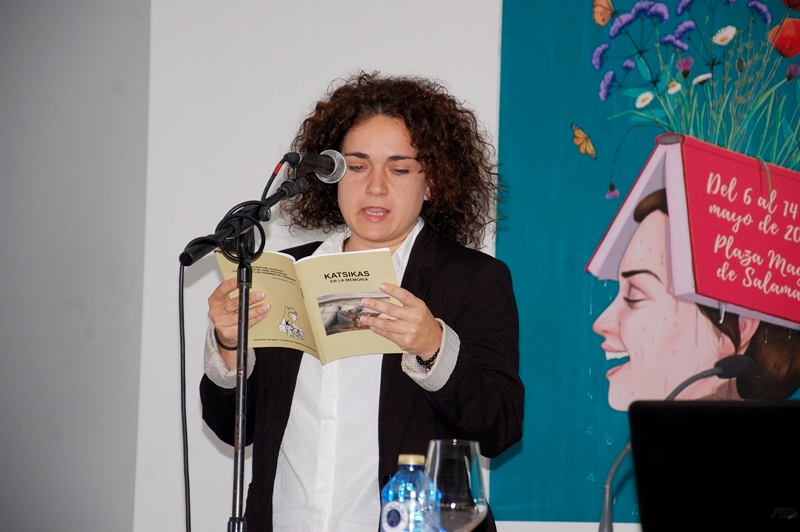 Con la voz entrecortada y aún así firme, Ferchu ha definido Katsikas como un campo de concentración donde se hacinan los refugiados en Grecia a la espera de su destino. Un lugar donde acudió a trabajar y que le robó el corazón, ese que se conmovió con las historias de su habitantes: afganos, sirios, yazidíes? entre ellos niños y jóvenes que dibujaban, pintaban y fotografiaban a despecho de la desesperación. Y fueron esos dibujos los que alumbraron este libro, fruto de mucha gente, en el que los poetas y escritores salmantinos acompañaron las imágenes, de una inmensa, de una inefable pureza, con sus palabras.
