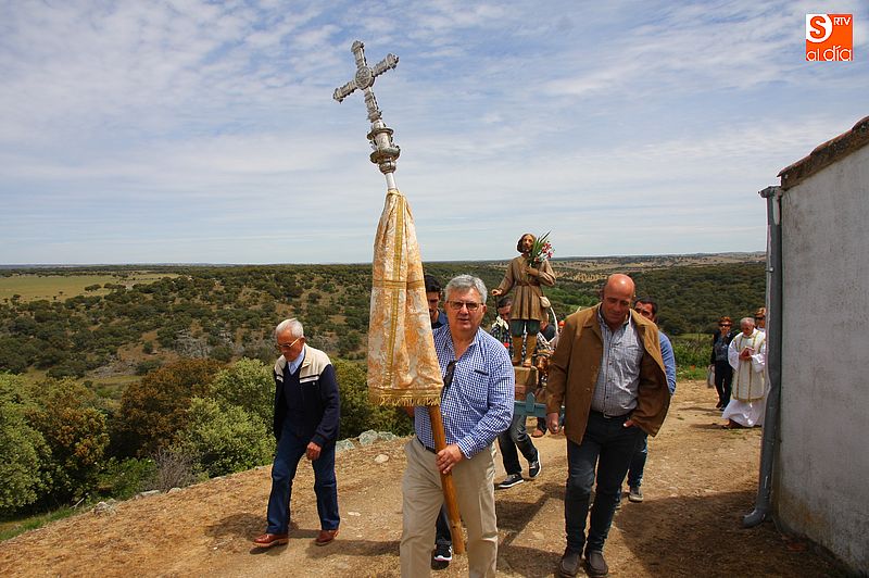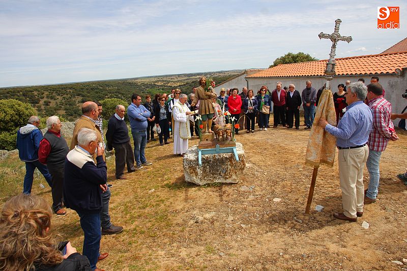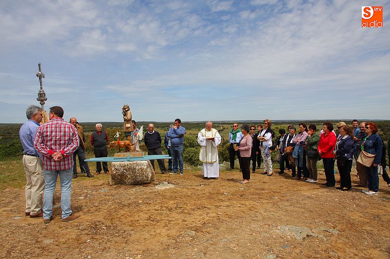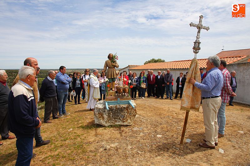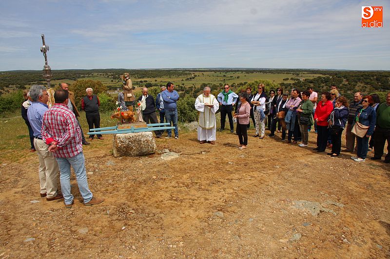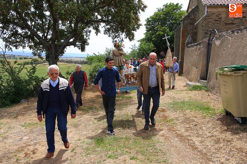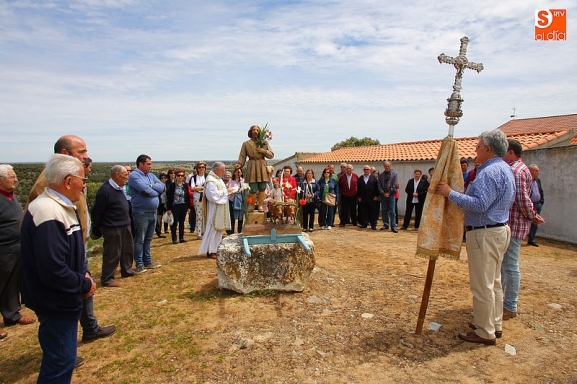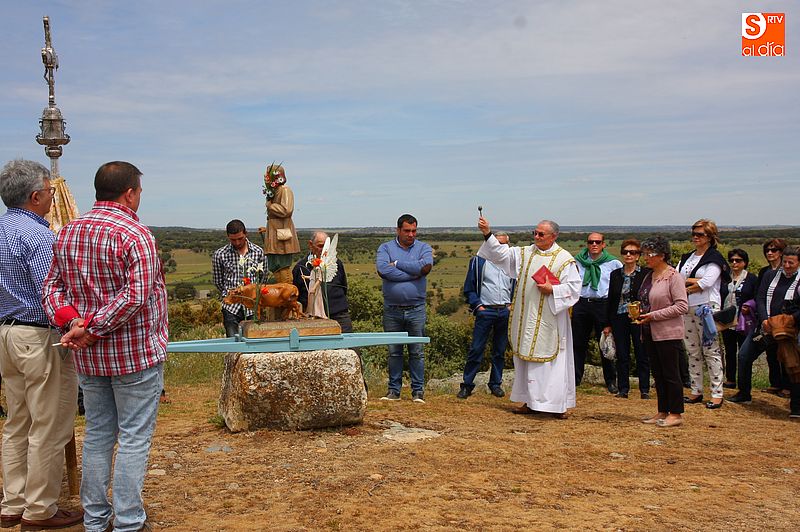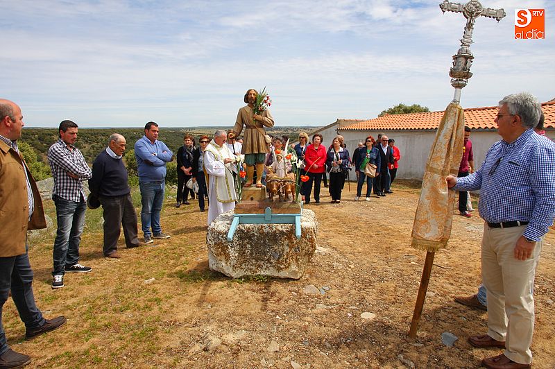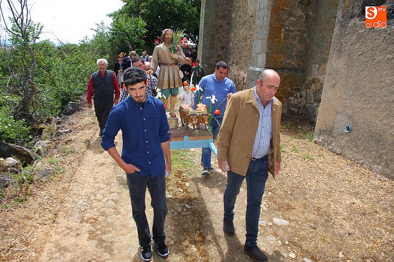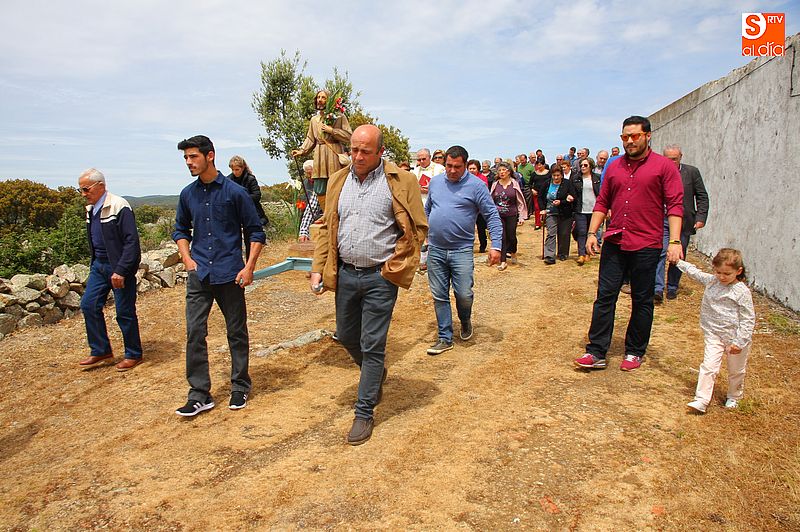 o religioso y a continuación llevaron la imagen del santo en un breve procesión hasta la trasera del templo, donde se bendijeron los campos, siguiendo la tradición. Todos los presentes compartieron un convite en el bar de la localidad al término de los actos religiosos.