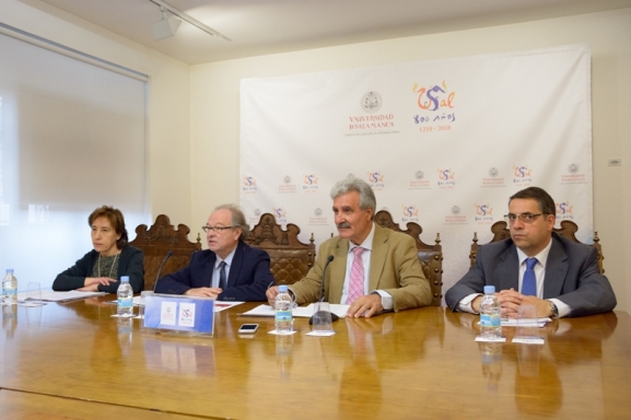 La Universidad de Salamanca se compromete con el "IV Día Internacional de la Fascinación por las Plantas" con el objetivo de poner de relieve la importancia de las plantas en nuestra vida. El vicerrector de Economía, Ricardo López, acompañado por el director del Instituto Hispano-Luso de Investigaciones Agrarias y del Banco de Germoplasma, José Sánchez, la decana de la Facultad de Biología, Mª Rosario Arévalo, y el decano de la Facultad de Ciencias Agrarias y Ambientales, Carmelo A. Ávila, ha presentado el conjunto de actividades diseñadas para la celebración de esta jornada en la USAL.