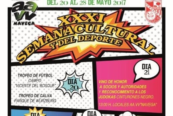 La Asociación de Vecinos Garrido Norte, Chinchibarra y Paseo de la Estación Navega organizan la XXX Semana Cultural y del Deporte, entre los días 20 y 29 de mayo, con actividades para todas las edades. Este año se reconocerá a Paula Igarotze Vivar, Antonio García Crespo, Francisco Rodríguez Pascual, José González Muñoz y Sergio Rodríguez Toribio, judokas del Club Deportivo Navega, tras obtener el cinturón negro 1ºDAN, dirigidos por el maestro Lorenzo Hernández García, cinturón negro 7º DAN.