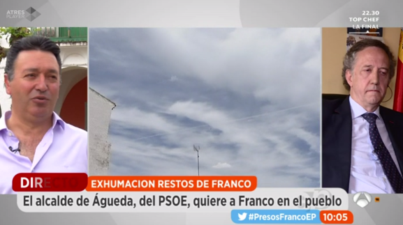 Dentro de la repercusión mediática que está teniendo a nivel nacional el deseo expresado por el alcalde de Águeda, Germán Florindo, de que su pedanía acoja los restos mortales de Francisco Franco si son exhumados del Valle de los Caídos, en la mañana del miércoles fue turno para que fuese entrevistado en directo en el programa de Antena 3 Espejo Público que presenta Susanna Grisso.