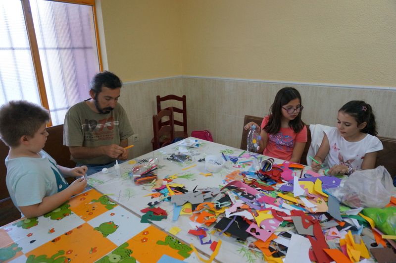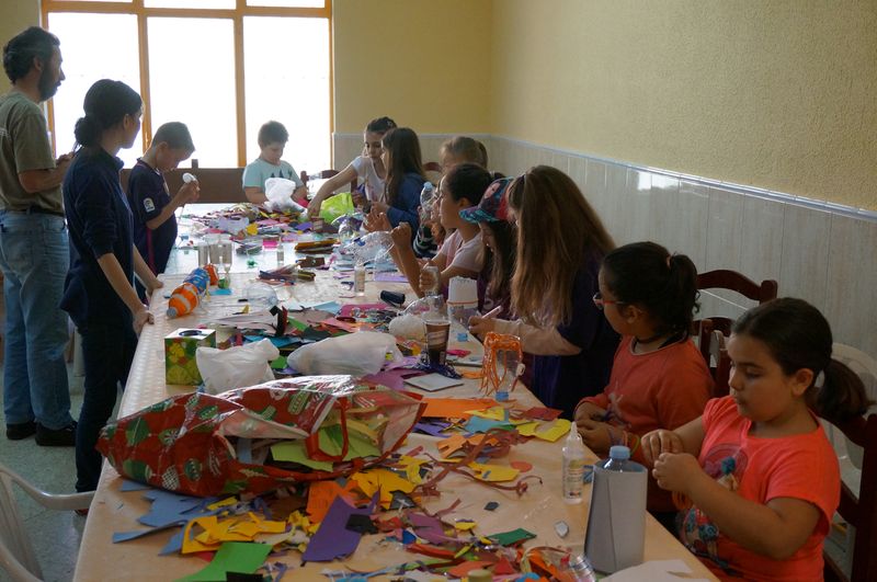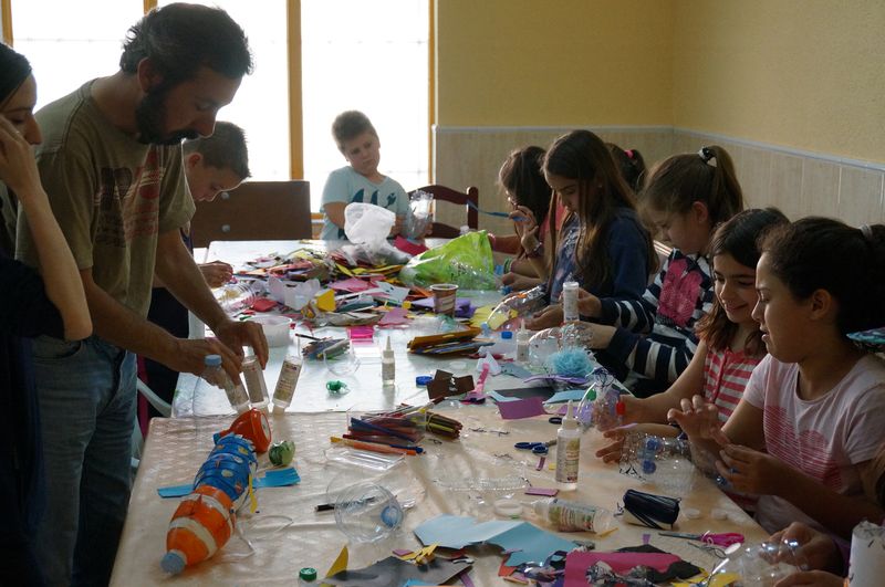 Durante el taller, los participantes fabricaron con mucha imaginación sus propios juguetes de los dibujos del pez Nemo y el Tiburón, a partir de materiales reciclados, jugando a ser artistas guiados por monitores educadores ambientales de Aquila Naturaleza.