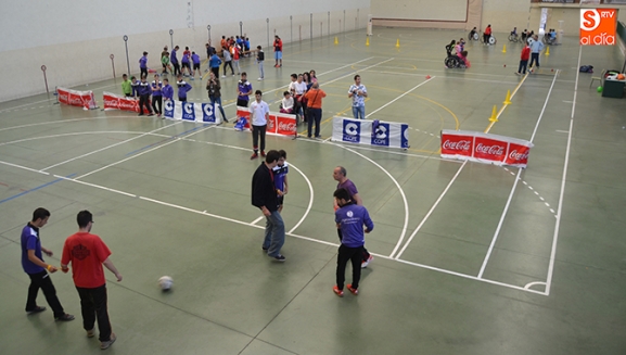 Decenas de jóvenes participaban este sábado en la II Jornada de Deporte Adaptado organizada por el Ayuntamiento de Peñaranda y la Asociación Aviva en el pabellón municipal Miguel Ángel Jiménez Barcala.