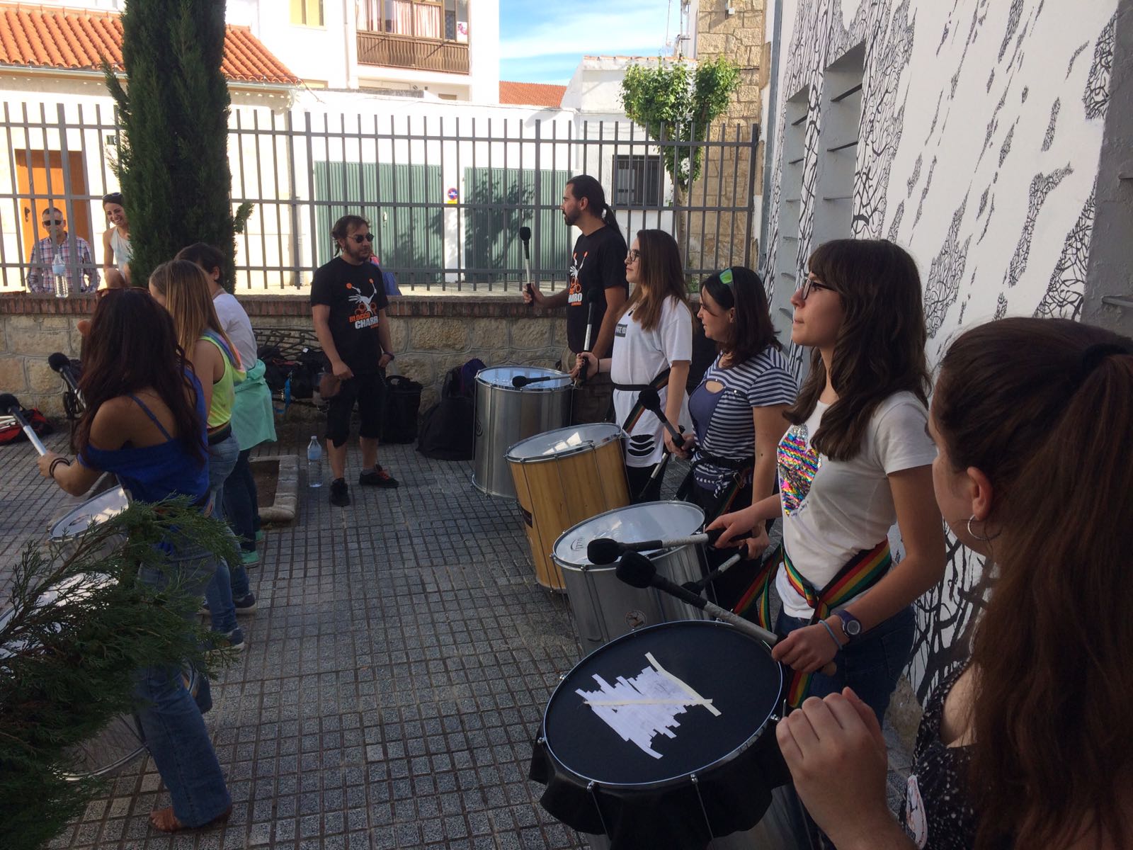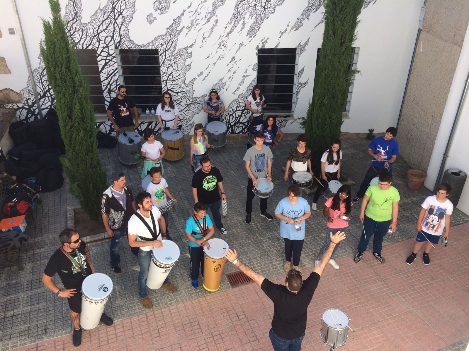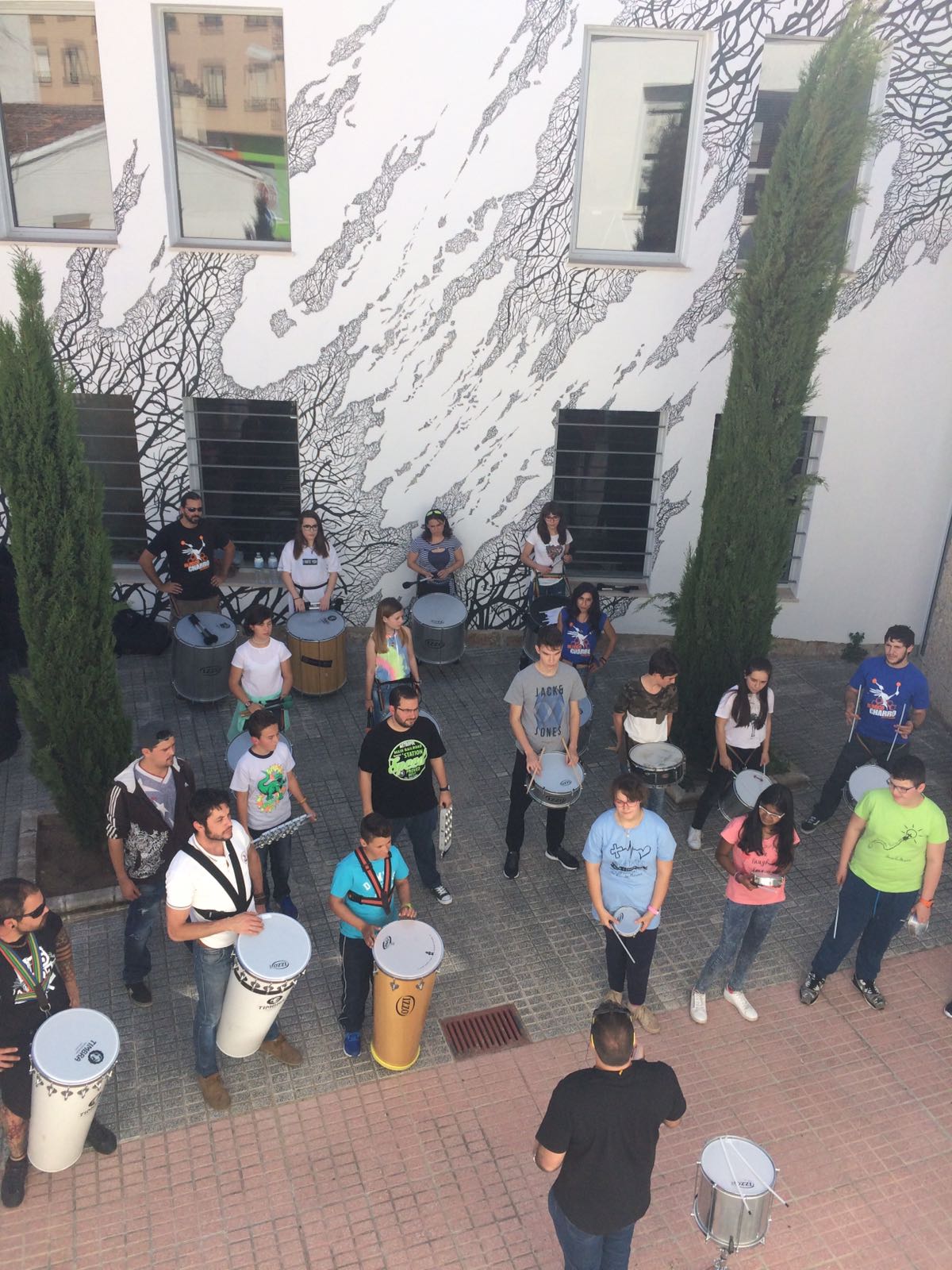 Los participantes en este taller (que agotó las plazas disponibles) pudieron conocer los ritmos y músicas de esta disciplina, tocando ellos mismos los instrumentos en el patio del Espacio i.
