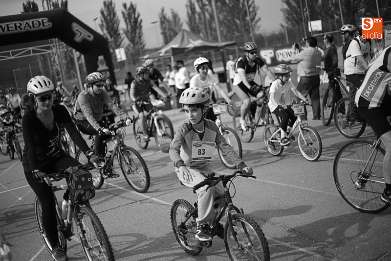 Carbajosa de la Sagrada ha sido escenario este domingo de una nueva edición de 'Decabike', una 'multi-actividad' deportiva con la que Decathlon potenciar el deporte familiar. La bicicleta ha sido la protagonista de esta jornada que ha incluido dos rutas, una de tres kilómetros para que los más pequeños puedan tomar contacto con la bici por las calles de la localidad incluso con ruedines, y otra de ocho kilómetros, cuyo recurrido ha transcurrido por un circuito que combina trazado urbano con una pequeña incursión en la Vifepla.