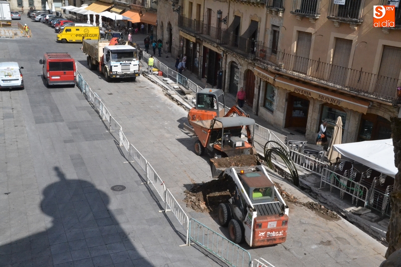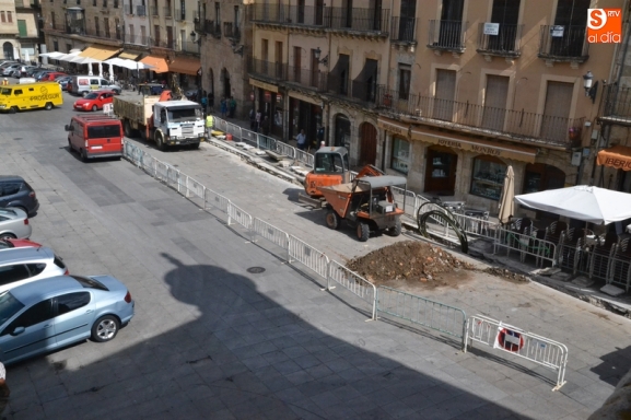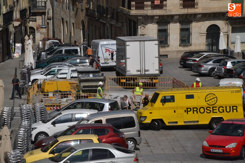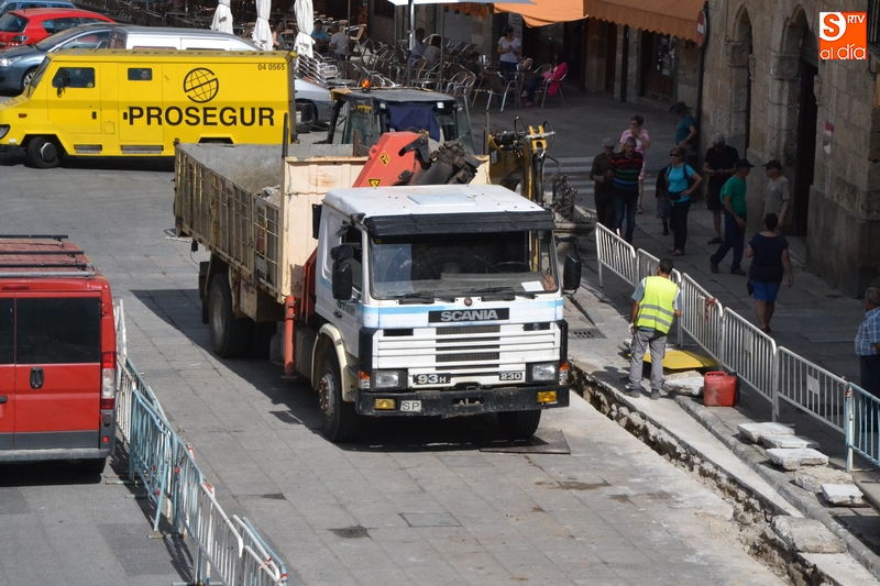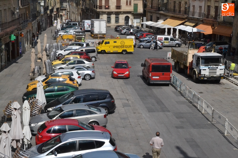 Como efecto 'colateral' de estas intervenciones, la Plaza Mayor ha visto reducidas durante estos días sus plazas de aparcamiento, haciendo asimismo un poco más difícil la circulación por el ágora.