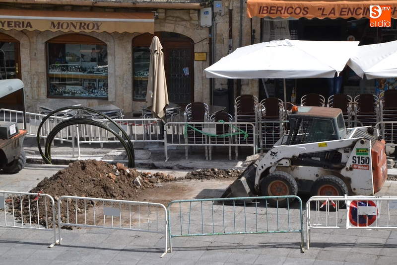 Por otro lado, hasta el ágora mirobrigense ha llegado también la intervención que se está realizando en numerosos puntos de la ciudad para la renovación del sistema del gas. En este caso, esta operación se centraba en la mañana del jueves en el lateral comprendido entre la calle Julián Sánchez y la Rúa del Sol.