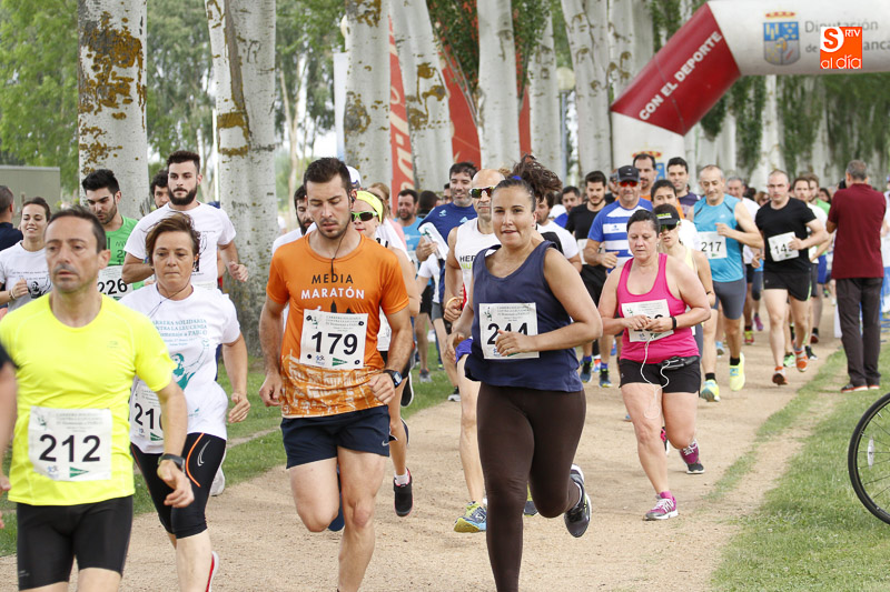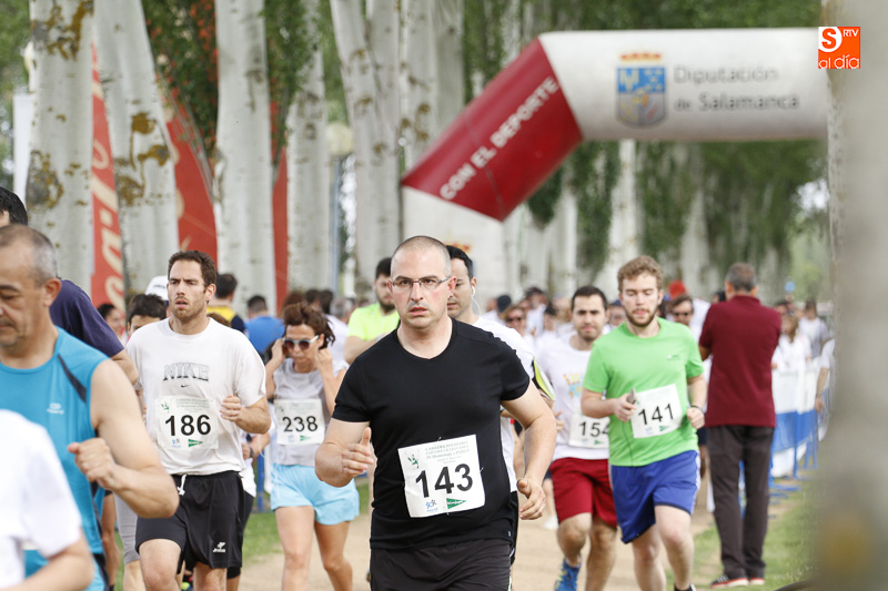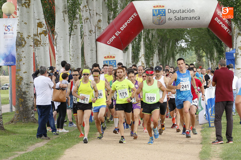 La carrera, con salida y meta en Salas Bajas, sobre una distancia de 5.000 m, se ha dado 19:00 horas y en ella los 139 corredores inscritos han tenido la oportunidad de completar un agradable circuito que discurría por la ribera del Tormes, casco antiguo y la zona monumental de Salamanca. También se dio a la vez la salida y celebró un Paseo Saludable que contó con una participación de 112 caminantes que dieron dos vueltas al recinto deportivo.