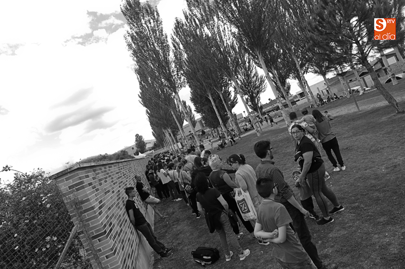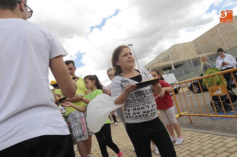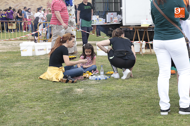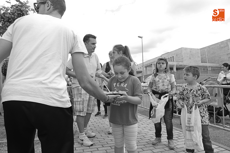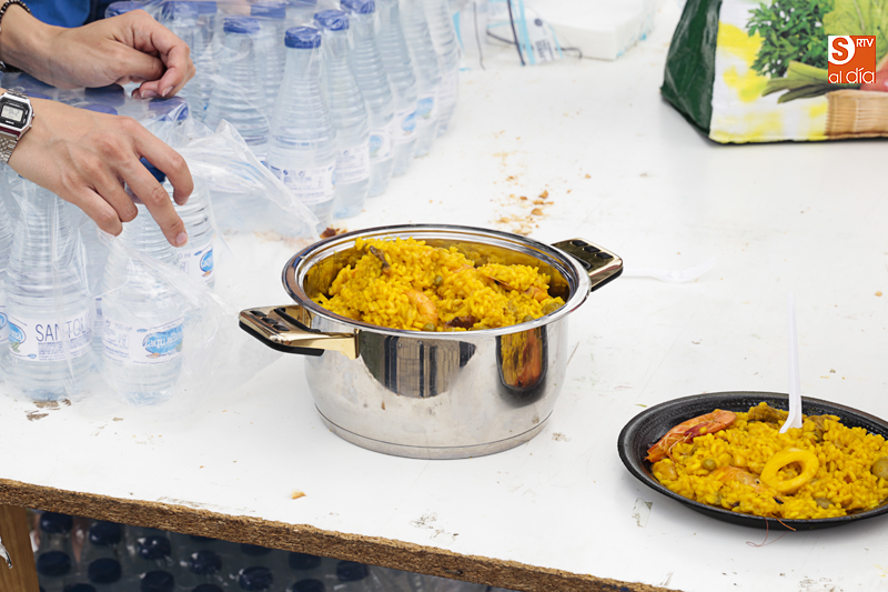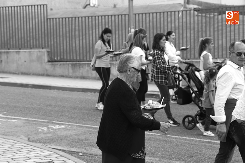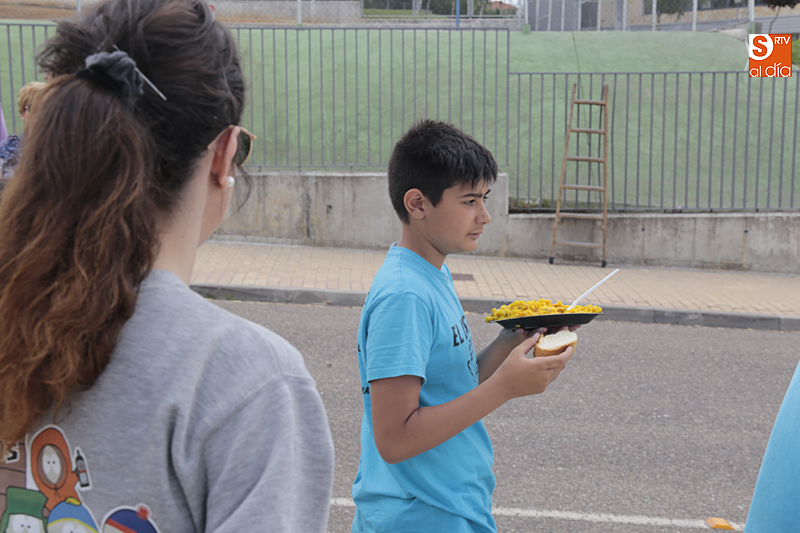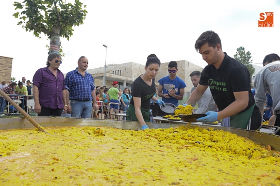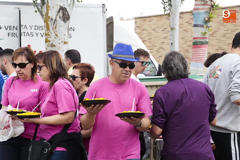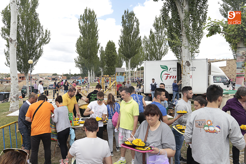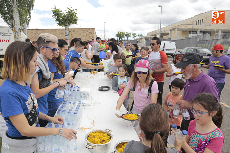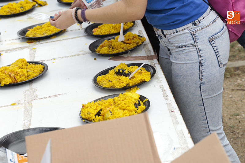 Además de compartir la comida de confraternidad, los cientos de vecinos que se han congregado en esta nueva ubicación han aportado su granito de arena a una causa solidaria, ya que el dinero recaudado con cada plato de arroz se destinará al Banco de Alimentos de Villamayor.