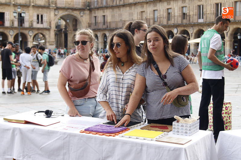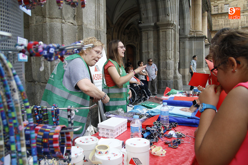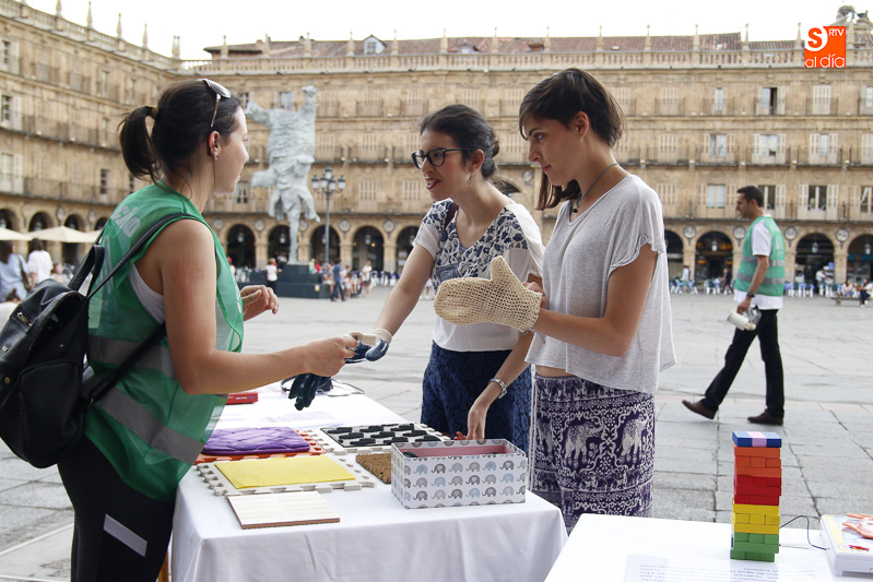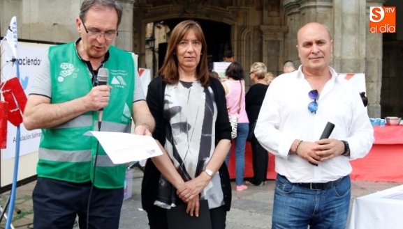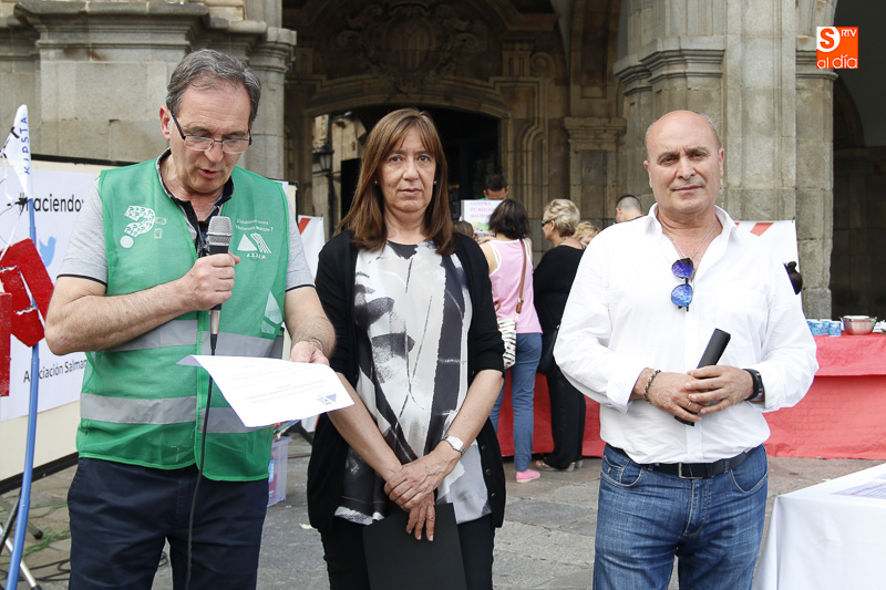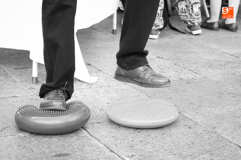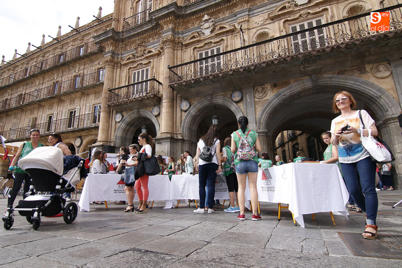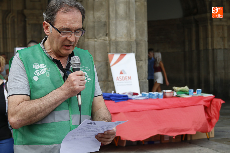'Haz visible lo invisible' es el lema con el que este año se celebra el Día Mundial de la Esclerosis Múltiple. La Asociación Salmantina de Esclerosis Múltiple ha realizado esta tarde un mosaico humano en la Plaza Mayor para llamar la atención sobre una enfermedad crónica del sistema nervioso central que afecta a más de 47.000 personas en España, 600.000 en Europa, y 2.500.000 en todo el mundo. El acto ha contado con la concejala de Salud Pública, María José Fresnadillo.