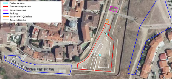 El ejército británico desplegará su campamento por todo el Paseo Fernando Arrabal -sin llegar hasta el Cuerpo de Guardia de San Pelayo, como se puede ver en la imagen de la derecha-, mientras que el ejército francés (imagen superior) estará asentado en la zona del Postigo de San Pelayo. En cada una de esas zonas, habrá puntos de agua, zona de cocina y WC químicos. Asimismo, se han asignado zonas de parking en las inmediaciones.