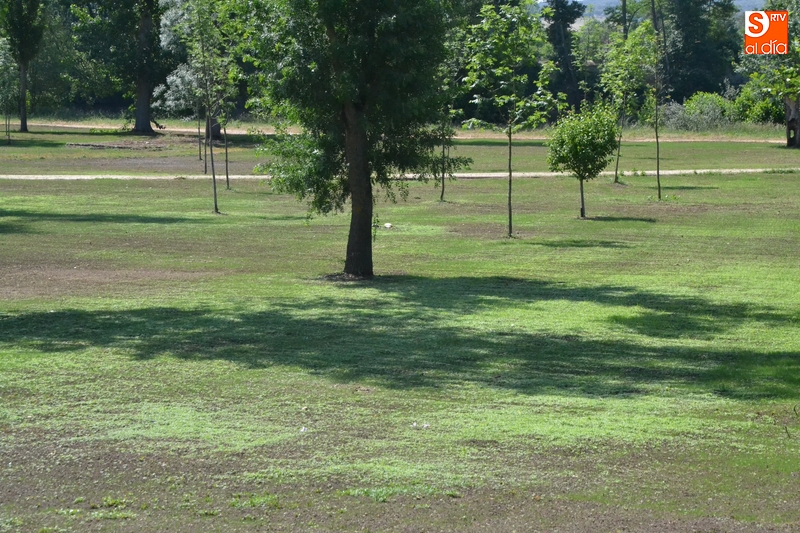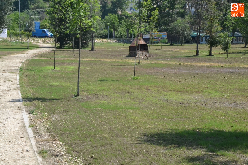 Como se puede ver en las imágenes, gracias al riego automático colocado en esa zona el césped está creciendo con bastante rapidez, y estará a punto para cuando en apenas unas semanas llegue la época del año de mayor utilización del entorno del río.