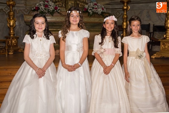 Con mucha alegría y rodeadas del cariño de sus familiares, cuatro niñas de Babilafuente han celebrado este sábado su primera comunión en la iglesia de San Benito. Al finalizar la ceremonia, mientras recibían las felicitaciones, han posado para las fotografías que han inmortalizado uno de los días más especiales de sus vidas.