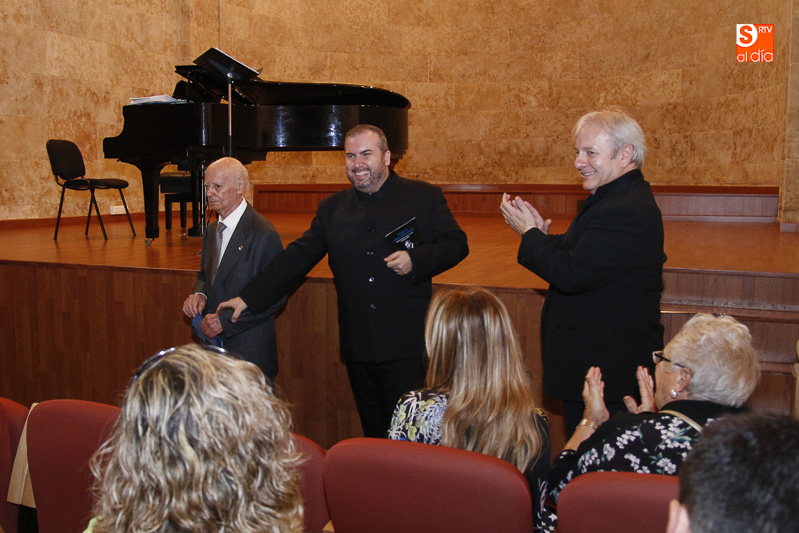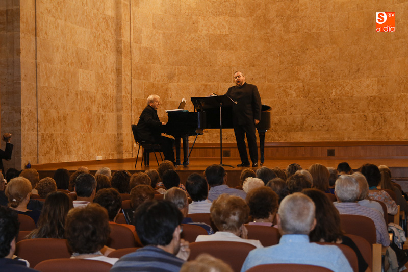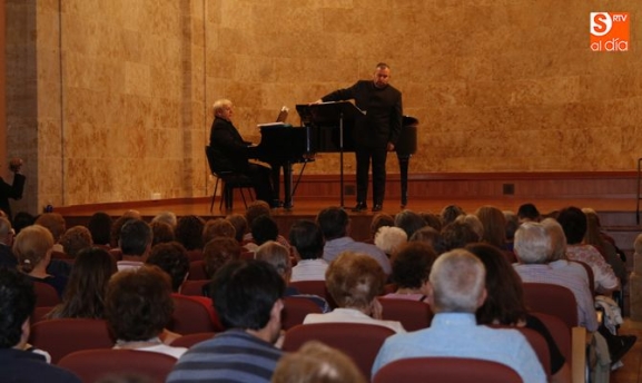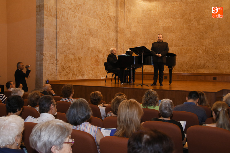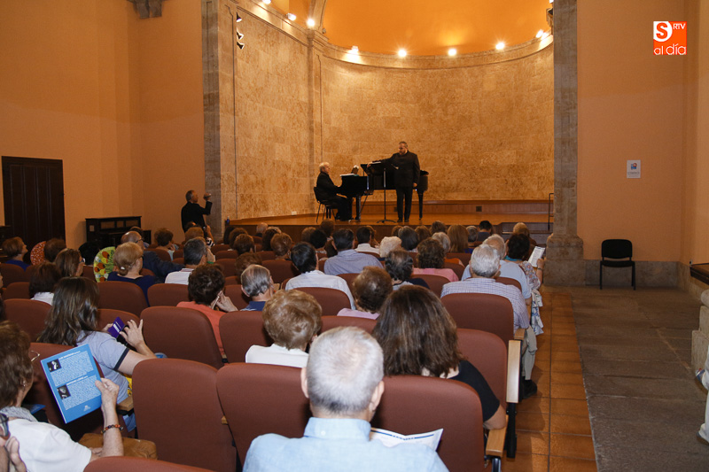 El Auditorio de San Blas ha sido escenario este sábado del concierto interpretado por el barítono Luis Santana y el pianista Antonio López para homenajear a Venancio Blanco. La actuación ha comenzado con un paseo musical por canciones de compositores musicales que han inspirado la obra del escultor salmantino Venancio Blanco: Bach, Mozart, Beethoven, Rossini y Brahms. A continuación se han escuchado 'Cantar del Alma', de Federico Mompou, y 'En defensa del Sayal', de David Rivas dedicadas a San Juan de la Cruz y a Santa Teresa y finalizarán esta parte del concierto con Manuel de Falla.