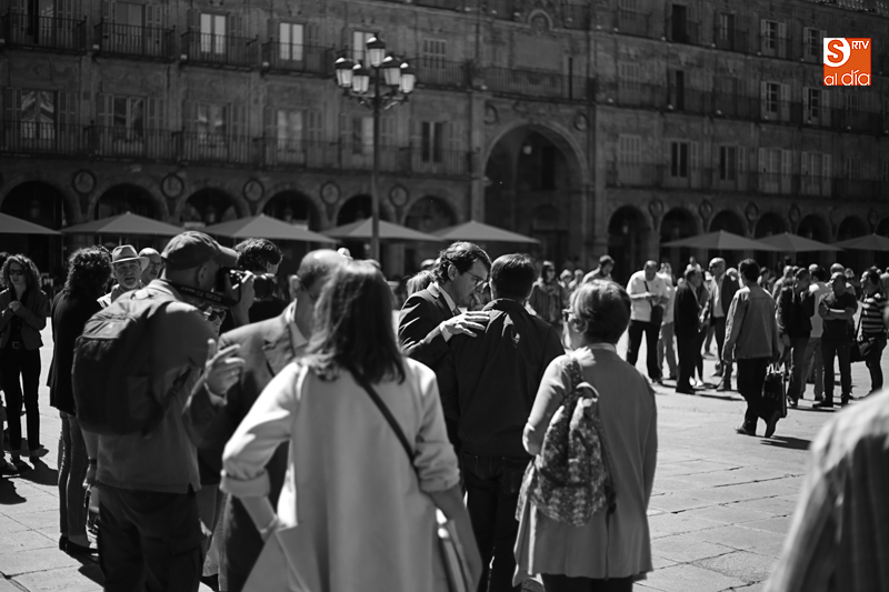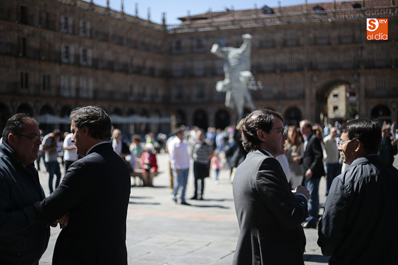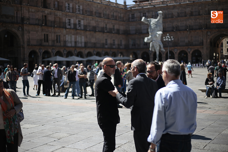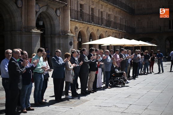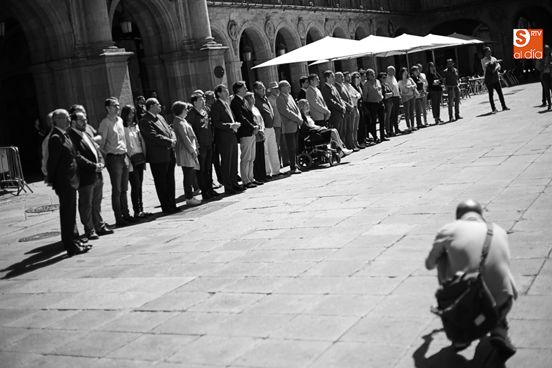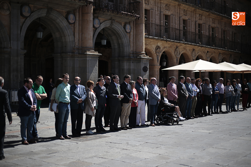El Ayuntamiento de Salamanca se ha sumado este lunes, a las 12.00 horas, en la Plaza Mayor, al minuto de silencio convocado por la Federación Española de Municipios y Provincias (FEMP), como muestra de solidaridad con las víctimas de los ataques ocurridos en Londres.