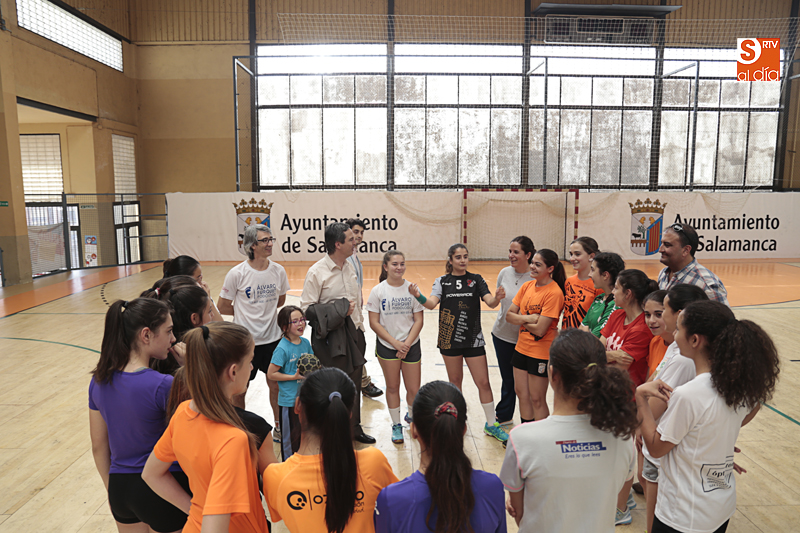 El concejal de Deportes, Enrique Sánchez-Guijo, visitó este lunes al equipo infantil femenino del Club Balonmano Ciudad de Salamanca antes de disputar el Campeonato de España este próximo fin de semana en tierras alicantinas. Desde el Consistorio se ha querido mostrar un especial apoyo a este equipo que ha hecho historia al meterse en un Nacional Infantil y que disputará el Campeonato de Balonmano con toda la ilusión del mundo. El edil mostró su más sincera enhorabuena por el reciente éxito a jugadoras y cuerpo técnico. Además, Sánchez-Guijo aprovechó para desear al equipo la mejor de las suertes de cara al campeonato nacional que están a punto de disputar y para alzarse con el trofeo. Por otro lado, el concejal remarcó como una prioridad para el Ayuntamiento fomentar el deporte entre los más jóvenes.