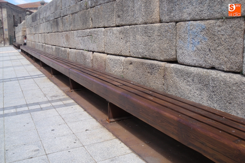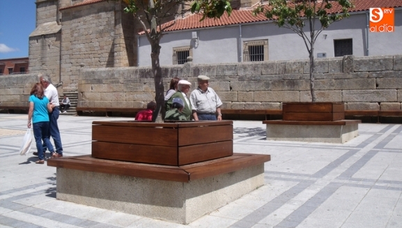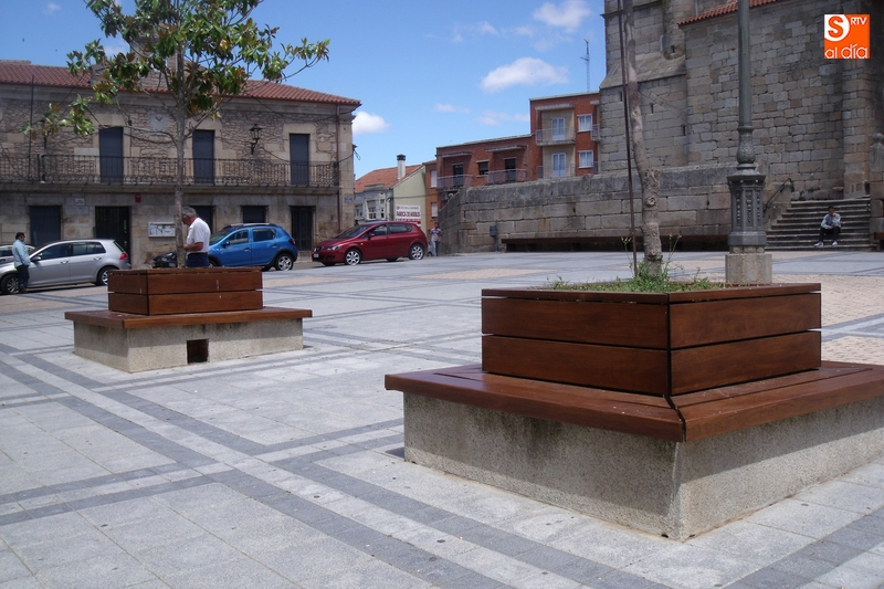 Asimismo, recientemente se han dado por concluidos los trabajos de mantenimiento y reparación del mobiliario urbano de la Plaza de España, que han consistido en el tratamiento y pintado de la madera que recubre los maceteros y el gran banco que recorre la parte inferior del atrio de la iglesia.