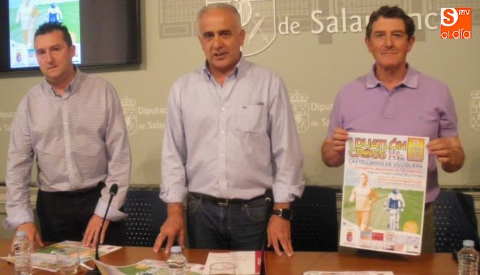 Castellanos de Villiquera celebrará el próximo domingo, 11 de junio, el I Duatlón Cross, a las 11.00 horas. El diputado de Deportes, Jesús María Ortiz; el alcalde de Castellanos de Villiquera, Santiago Castañeda y el concejal de Deportes, ÁngelÁlvarez, han presentado esta primera cita deportiva que cuenta con tres categorías, sénior, veterano A y B, y un primer recorrido a pie de 5 kilómetros, un segundo en bicileta de 20 kilómetros, para finalizar con otros 2,5 a pie.