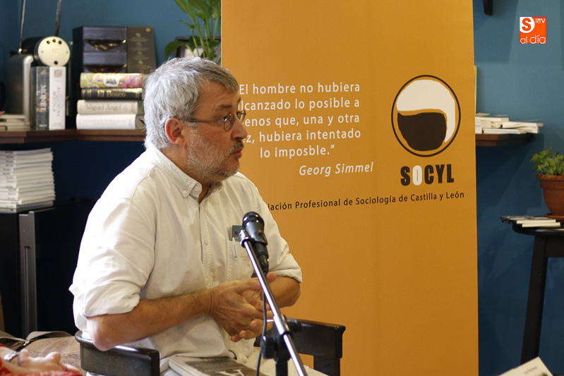 El ensayista y profesor de filosofía moral y política en la Universidad Autónoma de Madrid Jorge Riechmann, que ha presentado el libro 'Autoconstrucción: la transformación cultural que necesitamos', ha sido el invitado de un nuevo encuentro de los Jueves Sociológicos, organizado por la Asociación Profesional de Sociología de Castilla y León (SOCYL) y que ha tenido lugar este jueves en la librería Letras Corsarias.