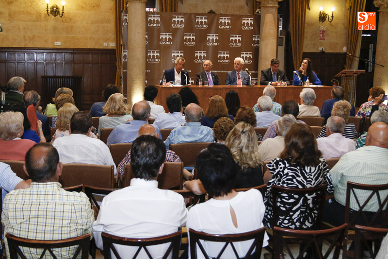 El Casino de Salamanca ha acogido este viernes el coloquio homenaje a Flores Blázquez y Víctor Manuel Martín, con motivo del cincuenta aniversario de su alternativa. Posteriormente, se ha celebrado una cena en el Hotel Monterrey de Salamanca.