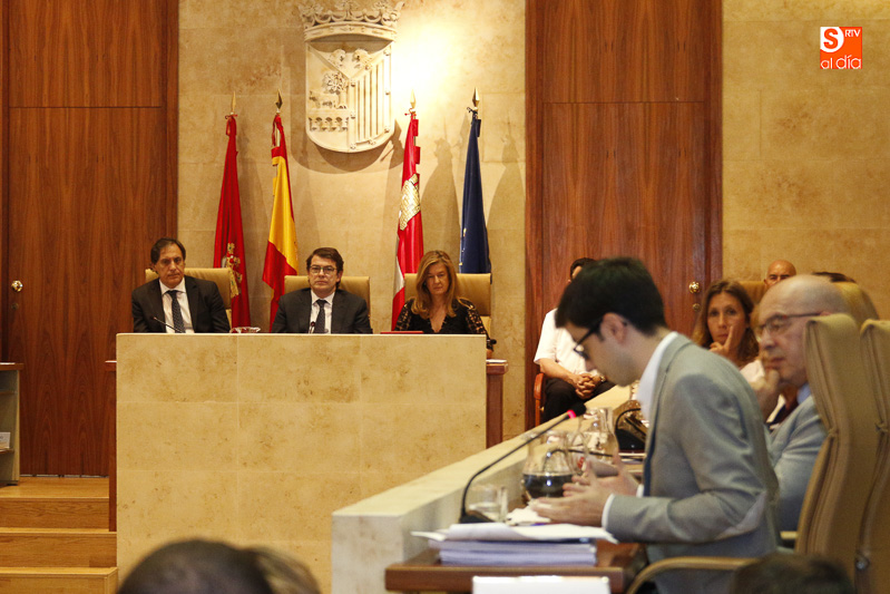 "Es falso que haya adquirido compromiso con personas o empresas para adjudicar la gestión de las escuelas municipales infantiles". El alcalde de Salamanca, Alfonso Fernández Mañueco, ha comparecido esta tarde de viernes, en pleno extraordinario, para reiterar lo ya anunciado en un comunicado el pasado 1 de junio. Poco más de una hora de pleno que no ha convencido a la oposición, mostrando su descontento con un alcalde que no ha respondido a las preguntas.