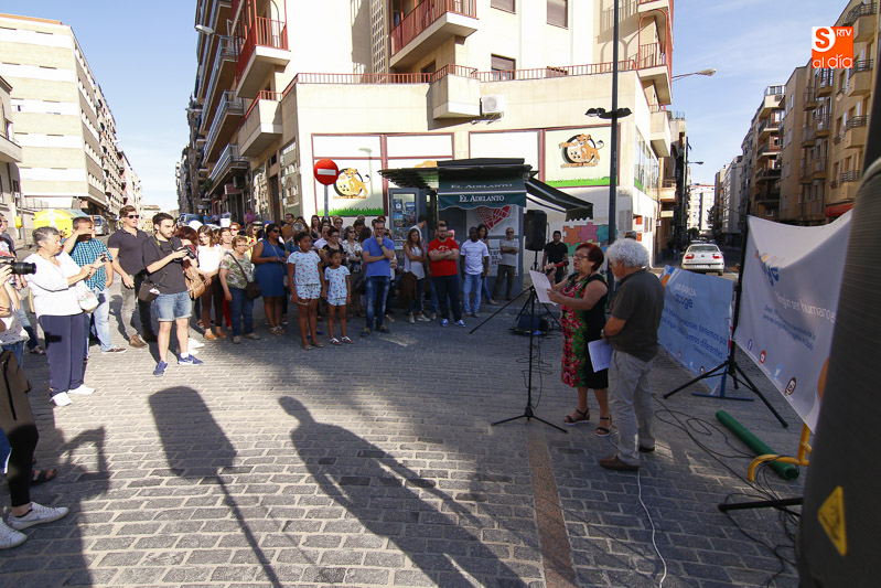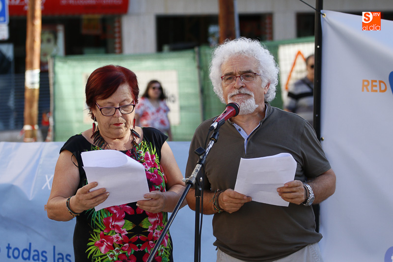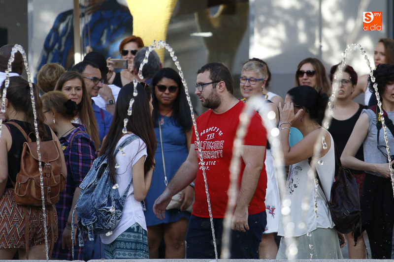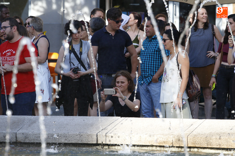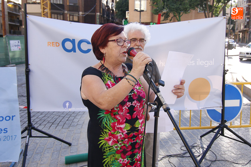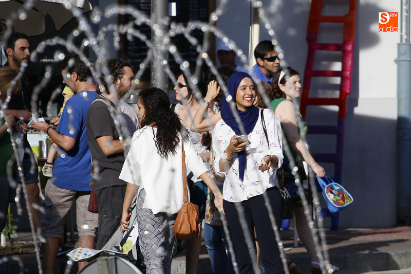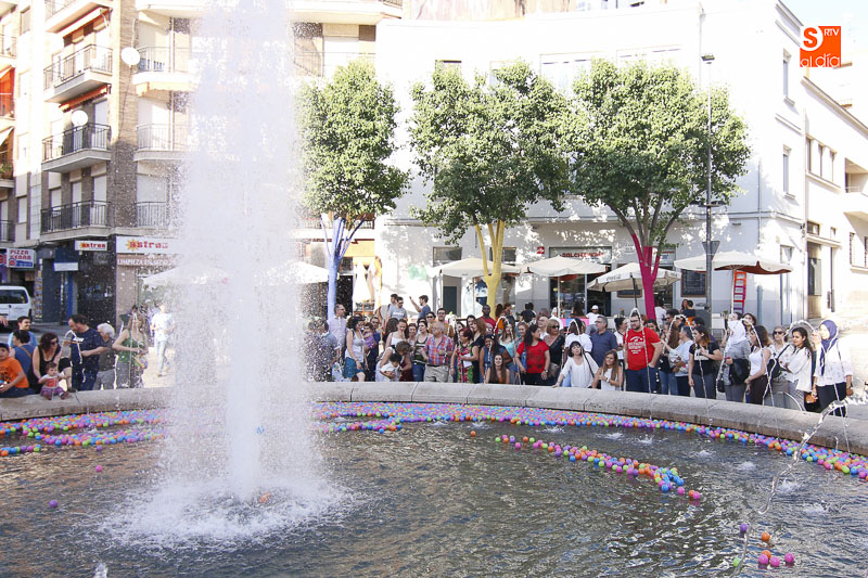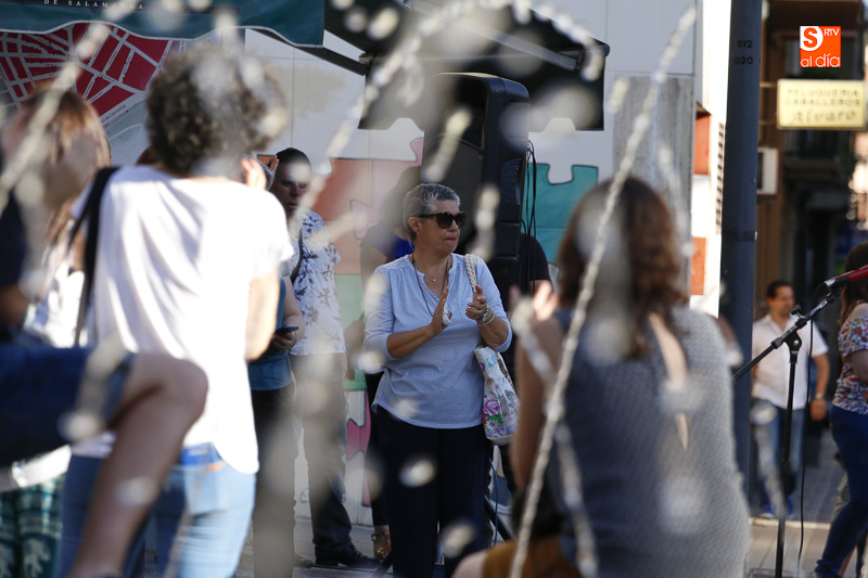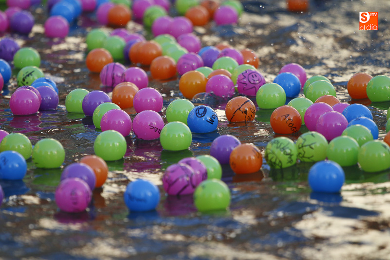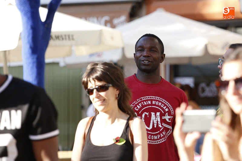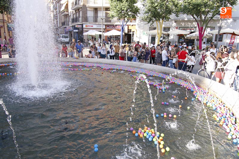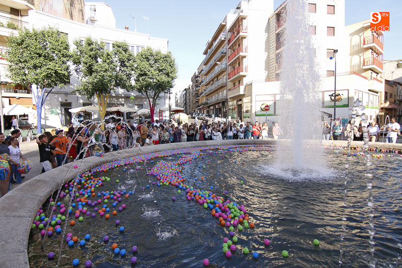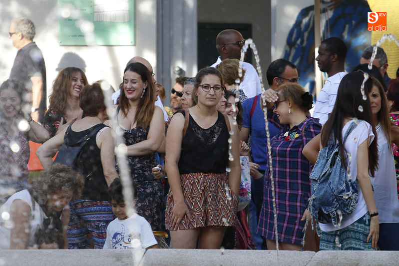En la fuente de la Plaza del Oeste han lanzado pelotas de colores con frases que reivindican la diversidad como símbolo de la sociedad plural y diversa por la que Red Acoge y Salamanca Acoge apuestan y trabajan.