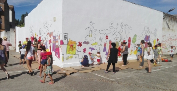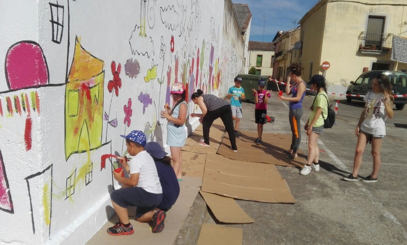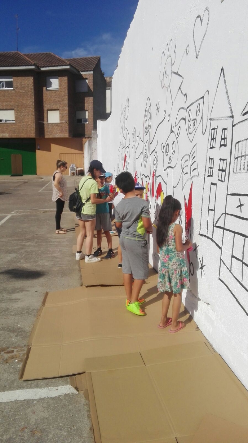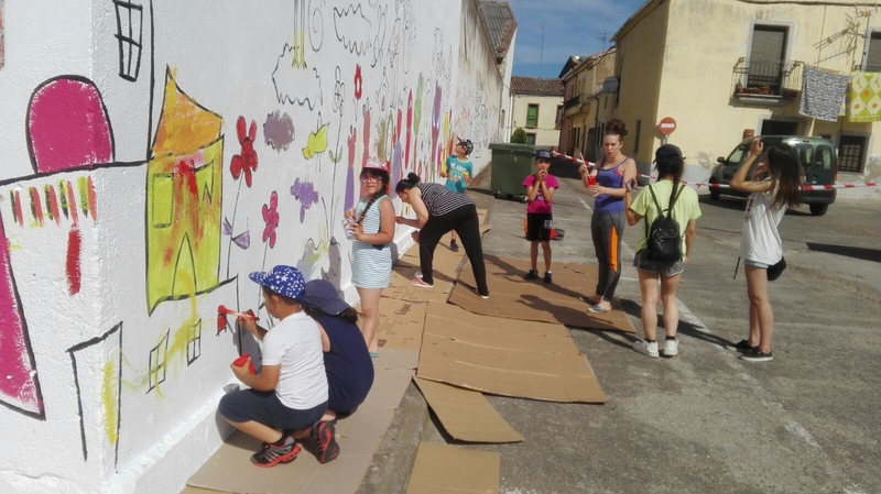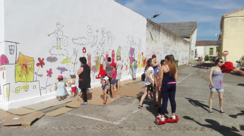 Durante esta calurosa jornada de sábado está adquiriendo un nuevo aspecto la parte trasera -la que da a la Plaza del Toral- del antiguo Matadero Municipal situado en el Arrabal del Puente de Ciudad Rodrigo, gracias a la colaboración de niños del barrio, del colectivo CROMA y de otras entidades como Asprodes.