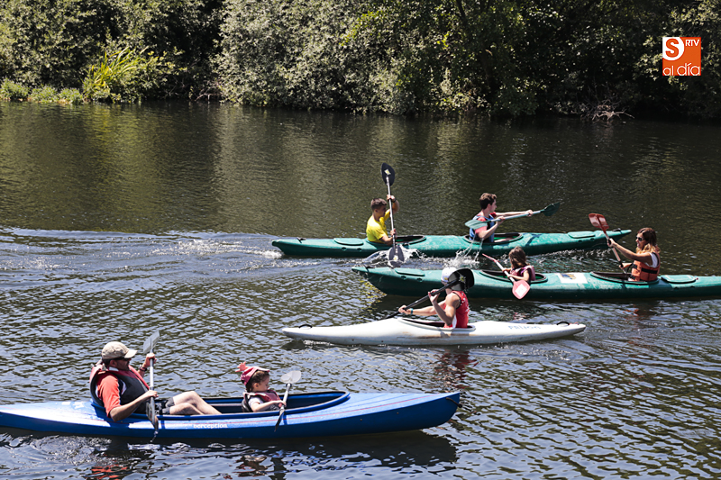 Un año más, aprovechando la jornada festiva de San Juan de Sahagún, el embarcadero de Mirat, en el paseo fluvial, ha sido el punto de partida de una jornada de promoción de piragüismo. Así, los participantes, de manera gratuita, han podido disfrutar de esta especialidad deportiva, que permite el deleite con el medio natural, en este caso en el río Tormes.