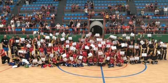 La cita deportiva en esta tarde de fiesta en la ciudad ha contado con la participación de más de 125 niños de edades comprendidas entre 5 y 15 años, que han celebrado su fiesta de graduación con una exhibición.