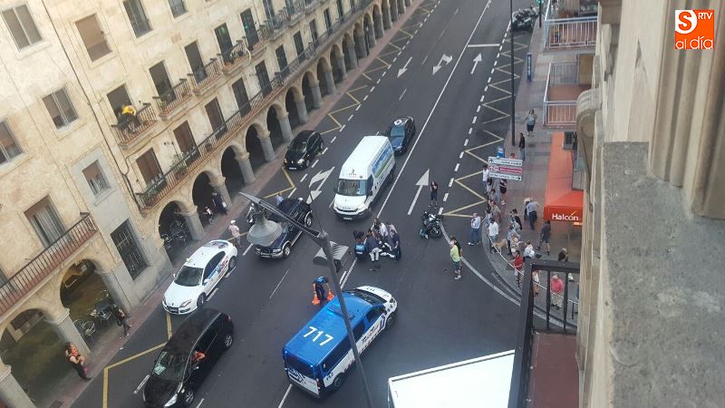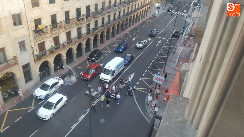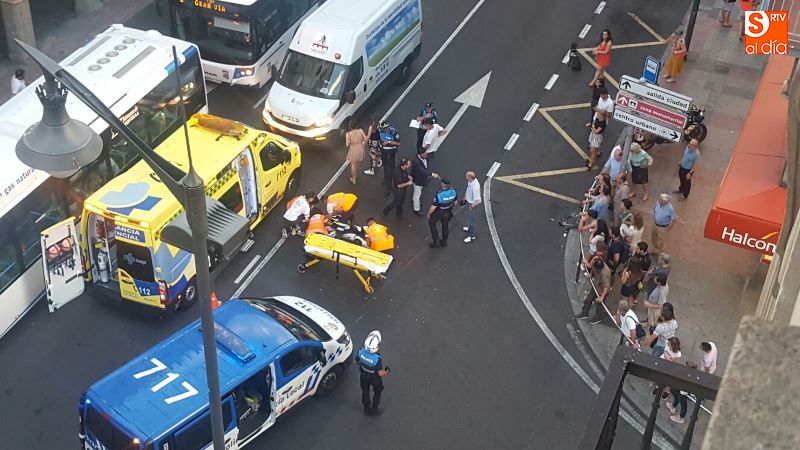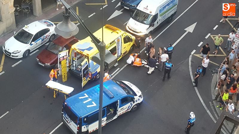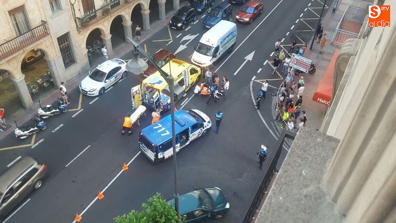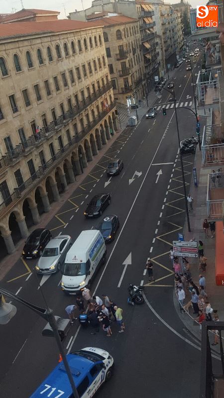 El impacto tuvo lugar, a la altura del número 47 de la Gran Vía, según los testigos, por un presunto giro irregular del coche (VÍDEO)