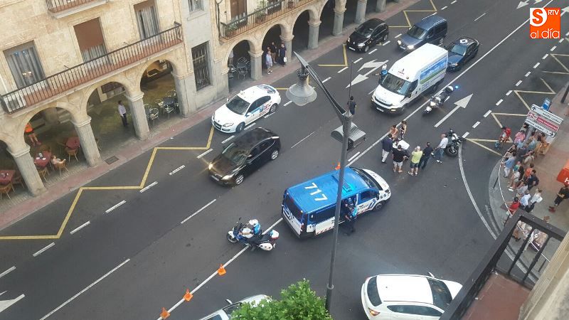 Un motorista ha resultado herido como consecuencia de un choque con un taxista, a la altura del número 47 de la Gran Vía. Según indican los testigos, el coche estaba dejando algún cliente junto a la Cafetería Marfil, tras lo que giró completamente para dirigirse a la calle Correhuela. En ese momento golpeó a una moto de gran cilindrada, que circulaba por la Gran Vía, dirección San Esteban.