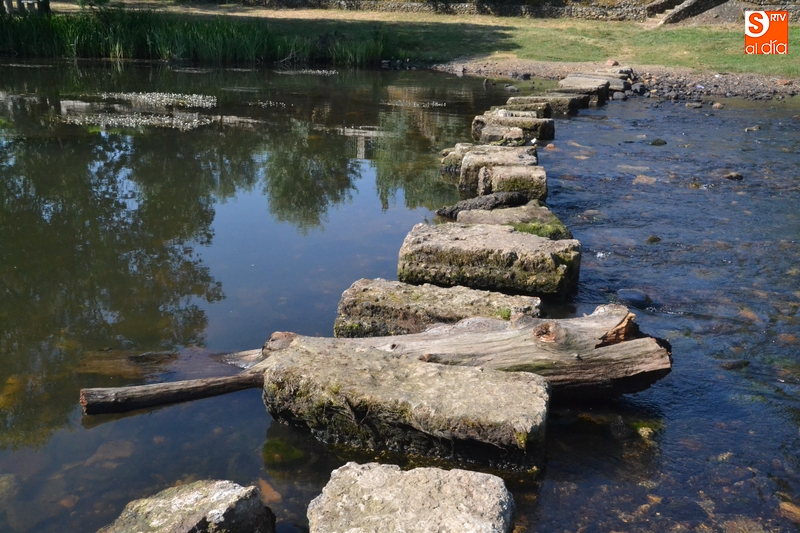 Como decimos, ese descenso es muy visible en la presa de La Pesquera, ocupando el agua una superficie menor en la bajada de la propia presa. Asimismo, el descenso del caudal también es apreciable en los pontones que permiten salvar el río Águeda entre el camping y la isla de El Picón, siendo ahora mismo posible el tránsito por los mismos sin mojarse los pies en ningún momento.