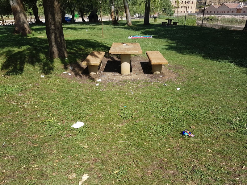 Esta persona hace especial hincapié en lo guarras que son las personas que han arrojado esos restos teniendo en cuenta que apenas a 5 metros de una de esas mesas hay un contenedor de pequeño tamaño. A lo largo de la mañana del jueves un operario del Ayuntamiento estuvo recogiendo esos restos de basura esparcidos por el suelo.