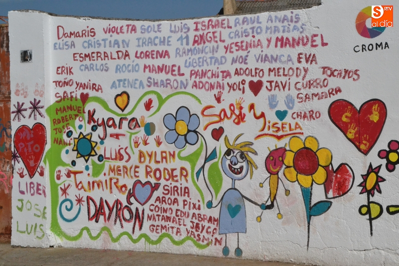 Como ya publicamos aquella jornada, la transformación directa de la pared corrió a cargo de los alumnos del Colegio El Puente, integrantes del colectivo CROMA y usuarios de Asprodes. Todos ellos pintaron durante la mañana las siluetas que había creado CROMA en tamaño grande a partir de unos dibujos realizados por los alumnos del Colegio en clase.