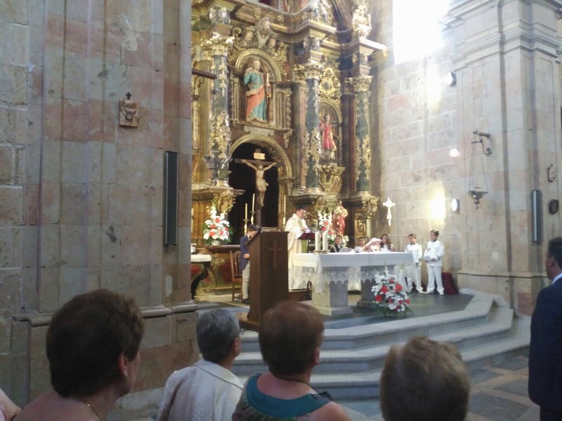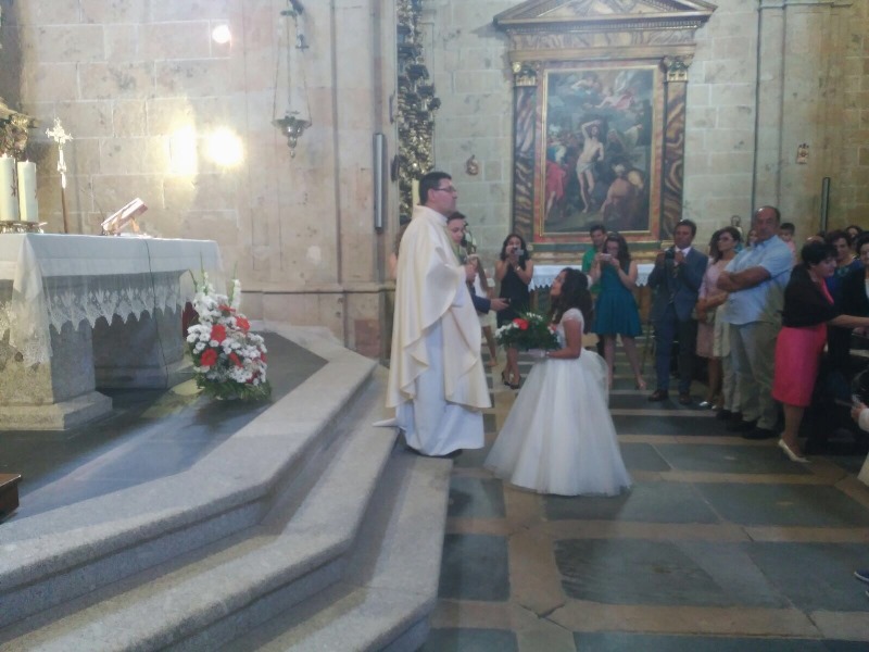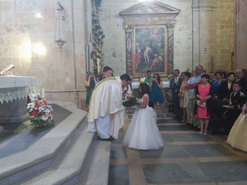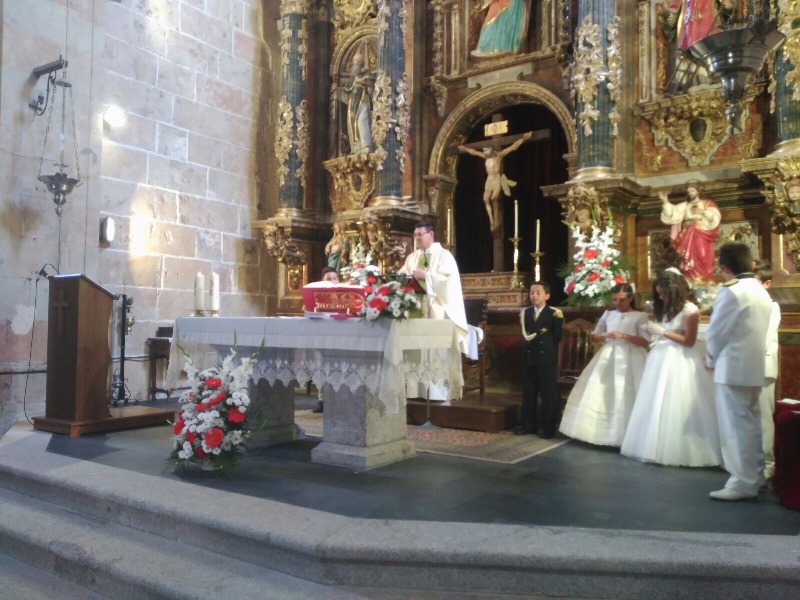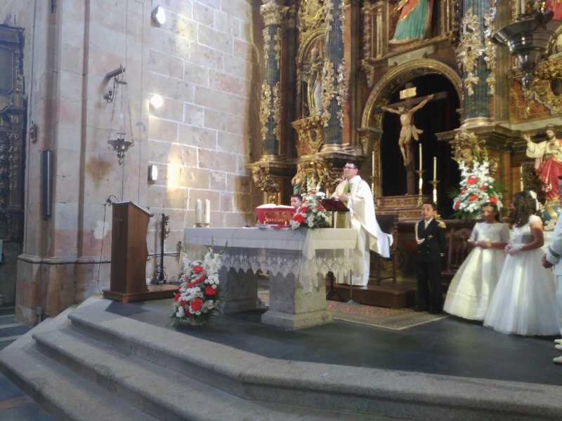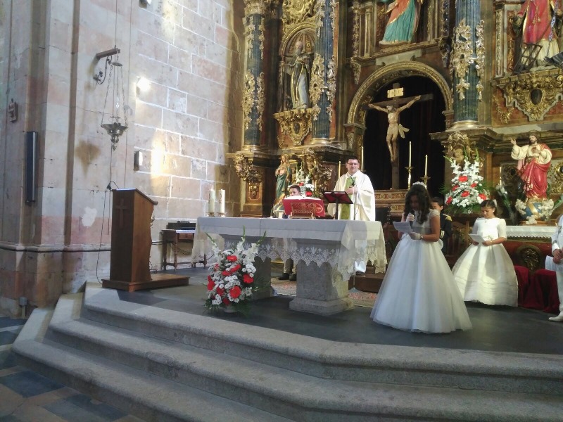 Del blanco de la alegría. La comunidad parroquial de Cantalpino ha vivido una entrañable y emotiva celebración eucarística de las comuniones. El hermoso templo del siglo XVII, declarado Bien de Interés Cultural (BIC), se llenó el pasado fin de semana de fieles para acompañar a Zaira, Vega, Samuel, Héctor e Israel en este paso dentro su compromiso cristiano con uno de los sacramentos que más importancia da la Iglesia.