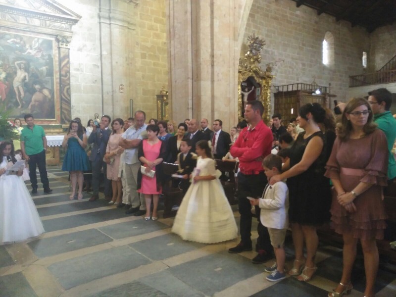 La Comunión de estos cuatro chavales convirtió la mañana en una fiesta religiosa, popular y social, al reunir a cientos de cantalpineses en este acto para arropar también a las familias de los celebrantes.