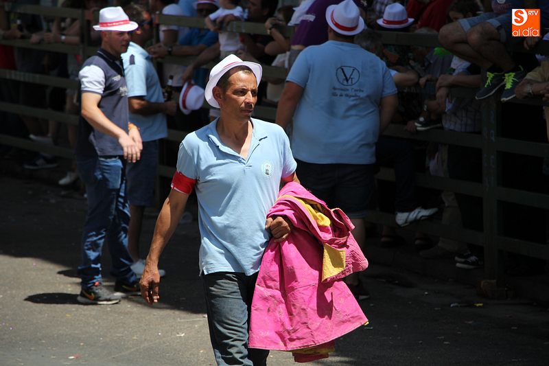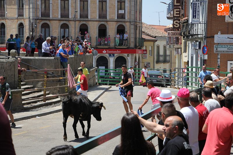 Este era el primer encierro tradicional del Corpus, pues la noche antes tuvo lugar un encierro nocturno que concluyó sin incidentes. En el festejo de este viernes se corrieron dos novillos de Eduardo Martín Cilleros y cuatro vacas de Francisco Galache. A excepción del revolcón por un descuido del corredor, los novillos pasaron sin peligro por las calles, mientras que las vaca de Galache repitieron sus embestidas en las vallas.