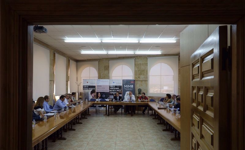 Los decanos de las facultades de Informática de la Universidad Pontificia de Salamanca y de la Universidad de Salamanca han mantenido esta mañana un encuentro con las empresas más relevantes de Informática y Tecnología de la ciudad y con la Asociación de Empresarios en Informática de Salamanca con el objetivo analizar la situación actual del sector y aunar esfuerzos que permitan poner en marcha actuaciones conjuntas para convertirlo en referente internacional.