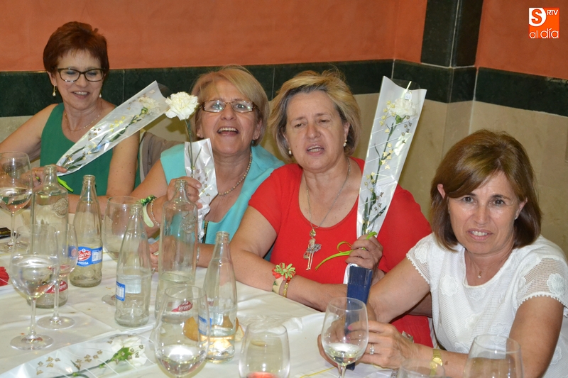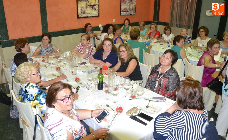 Este año la cena se desarrolló en el Restaurante Tamborino, recibiendo cada socia por parte de la Junta Directiva un clavel con un número para participar en el tramo final de la velada en un sorteo de regalos.