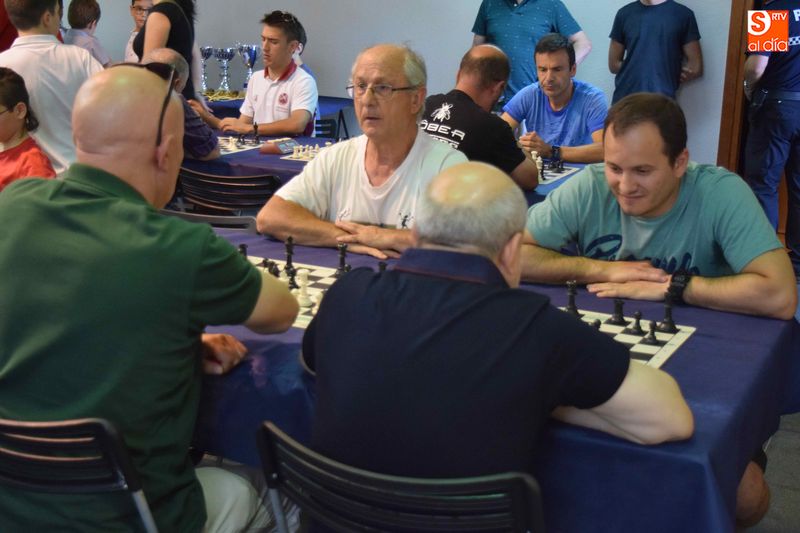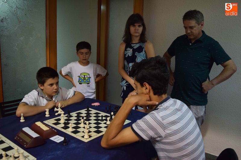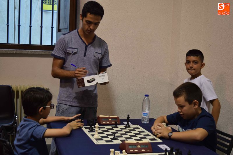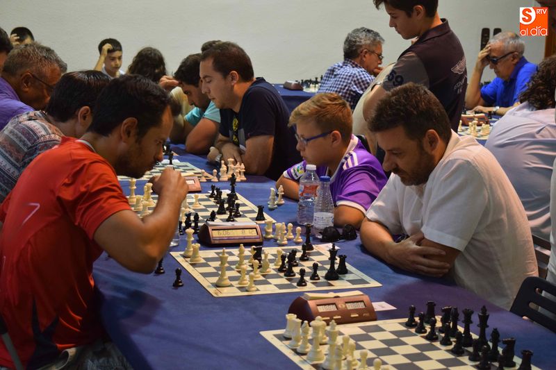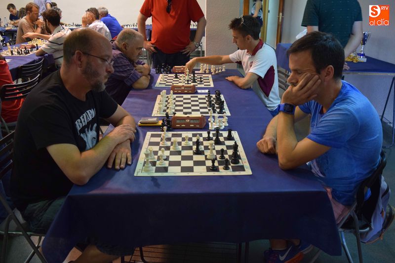 En el contexto de la Feria Artesanal y Alimentaria, cincuenta y cuatro personas se dieron cita en el Salón de Exposiciones del Ayuntamiento de Alba de Tormes para formar parte del I Torneo de Ajedrez 'Feria de San Antonio'. La ubicación del torneo tuvo que trasladarse de la Plaza de Santa Teresa, lugar donde se iba a celebrar, al Salón de Exposiciones del Ayuntamiento debido al intenso calor que golpeaba esta mañana la villa ducal.
