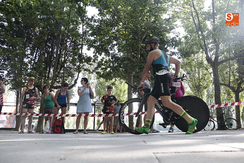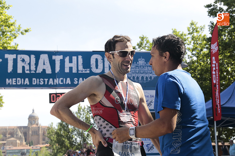 Salamanca es escenario este domingo de la tercera edición del Triatlón Media Distancia de Salamanca, con participantes de toda España. Como en anteriores ediciones, la prueba ha contado con dos distancias: la olímpica, de kilómetro y medio de natación, 40 de ciclismo y diez de carrera a pie; y la media distancia, del 1,9 kilómetros de natación, 90 de ciclismo y 21,1 de carrera a pie. El circuito de ciclismo y la carrera a pie ha transcurrido por el carril bici de Salamanca, pasando por el Puente Romano.
