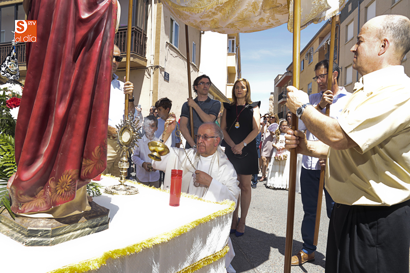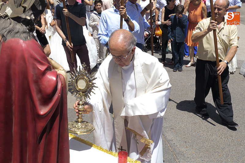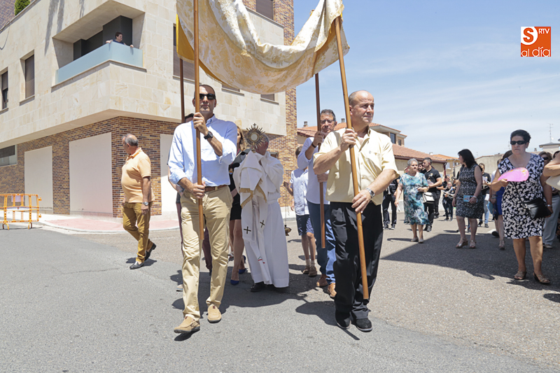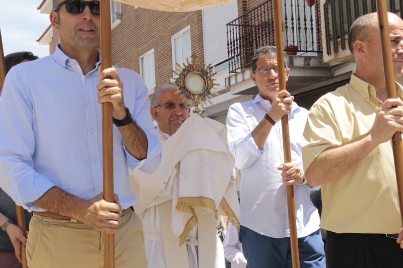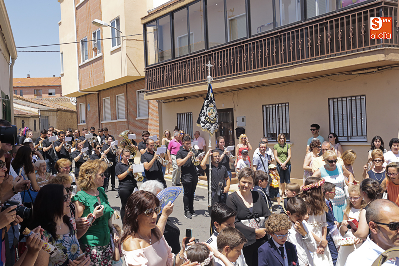 Olor a tomillo y música a cargo de la Agrupación Musical de Carbajosa de la Sagrada para acompañar la tradicional procesión por las calles de Carbajosa de la Sagrada, en una de las jornadas más importantes de las Fiestas del Señor. Última jornada festiva en la que vecinos y fieles se han sumado a la celebración de la Solemne Misa del Corpus y posterior procesión.