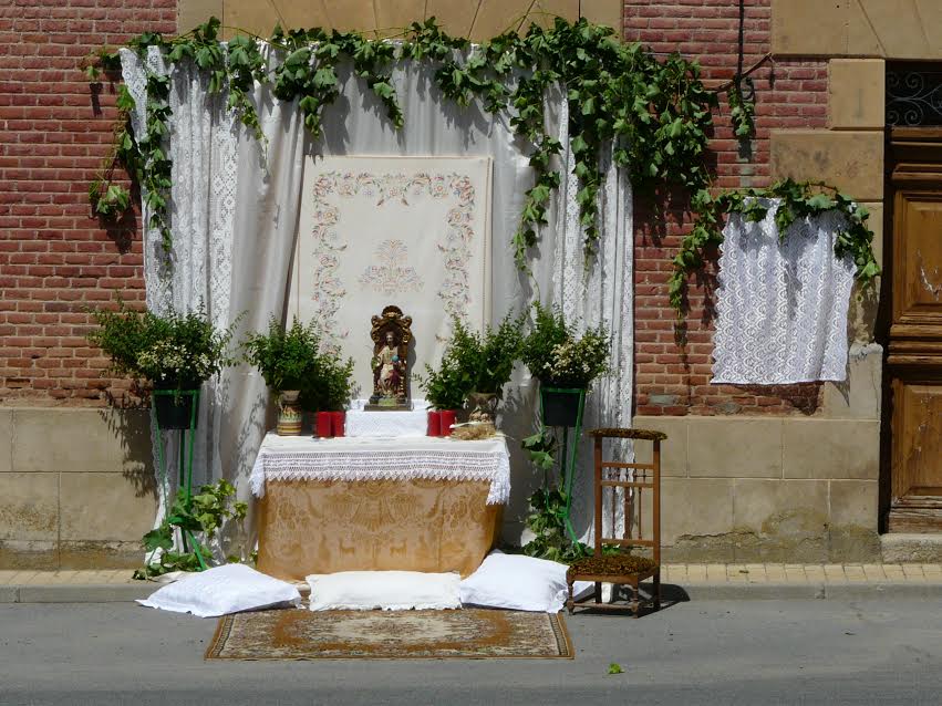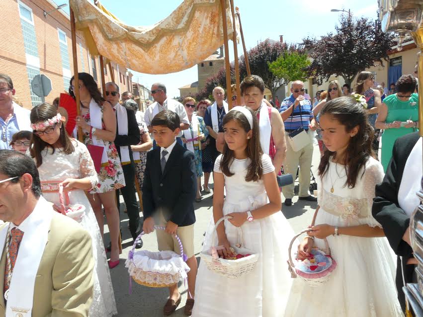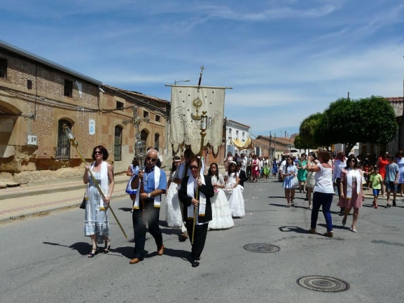 Numerosos vecinos se han sumado a la procesión del Corpus Christi, que ha recorrido este domingo las principales calles del municipio. El recorrido ha pasado por la decena de altares instalados con mimo por todo el pueblo, donde el cortejo se detiene para la bendición del párroco, Quintín García. Una vez más, los grandes protagonistas han sido los niños que han tomado la Primera Comunión este año.