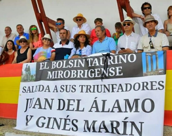 Una serie de integrantes de la familia del Bolsín Taurino Mirobrigense, con su presidente Sito Sevillano al frente, se desplazaron en la tarde del domingo hasta Ledesma para presenciar el festejo taurino de las fiestas del Corpus de la localidad en el que estaban acartelados dos antiguos triunfadores del certamen mirobrigense.