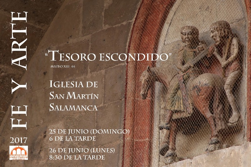 Los días 25 y 26 de junio se va a proyectar en la iglesia de San Martín de Salamanca el vídeo "Tesoro escondido", elaborado por un equipo de amantes y expertos en arte de la Unidad Pastoral Centro Histórico de Salamanca con la colaboración de los sacerdotes Tomás Gil y Juan Andrés Martín, impulsores del grupo diocesano Fe y Arte y párrocos de la Unidad Pastoral 'Cristo, Luz de los Pueblos'. El vídeo se proyectará el domingo 25 de junio, a las 18.00 de la tarde y el lunes 26, a las 20.30 horas. La entrada es libre y gratuita.